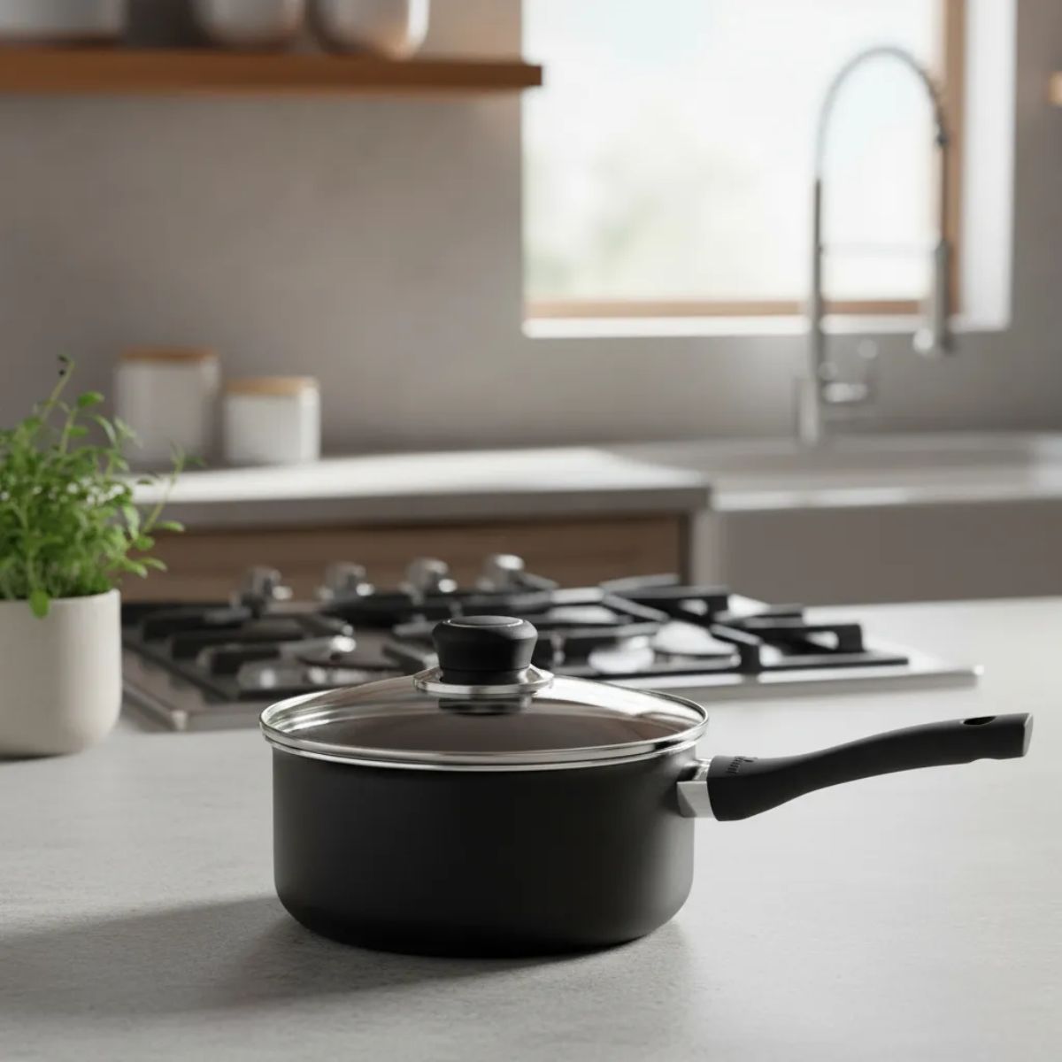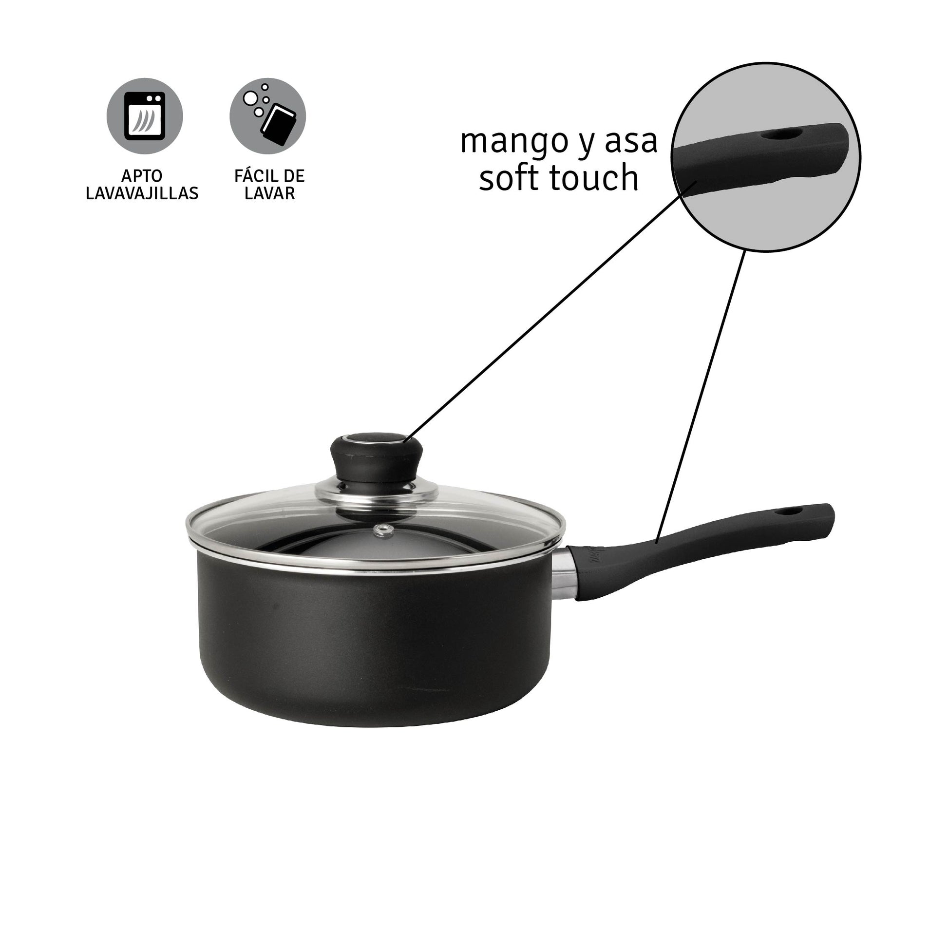 Cacerola 18 Cm Aluminio Negro Antiadherente Y Tapa De Vidrio
