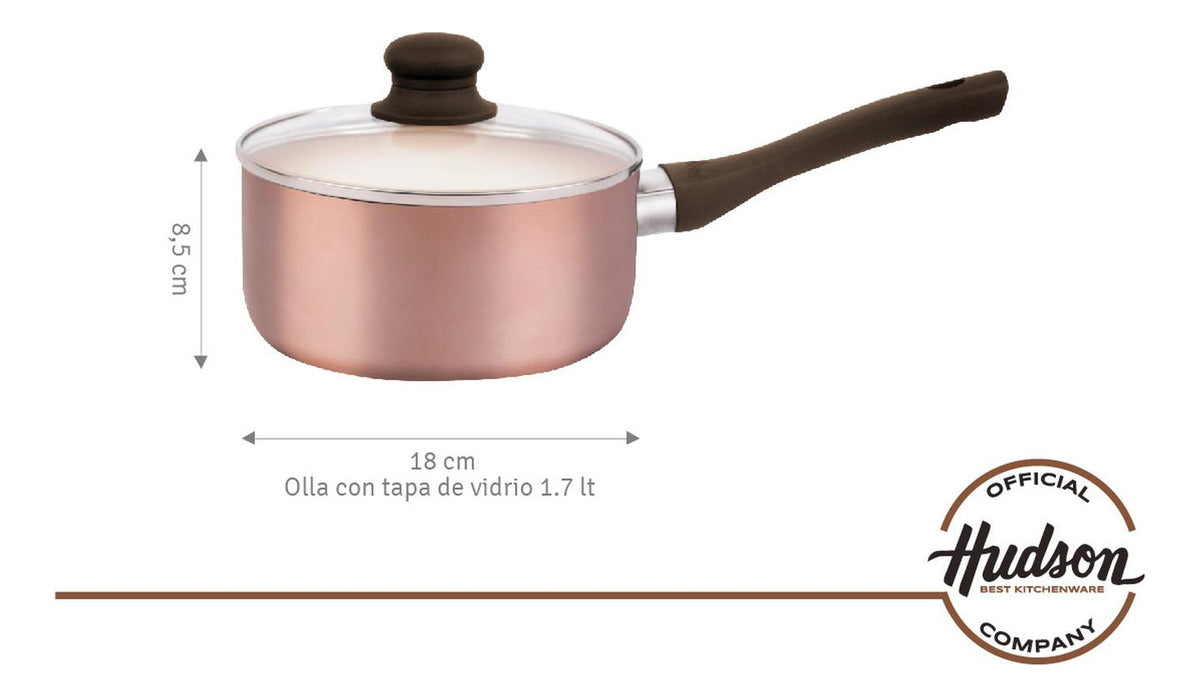 Si buscas una Olla que no solo sea funcional, sino también duradera y fácil de usar, la Olla Hudson con revestimiento antiadherente cerámico cobre de 18 cms es para tí. En Hudson sabemos que cocinar es más que una tarea, es una forma de crear. Por eso, nuestros productos están diseñados para hacer que cada plato sea una experiencia.