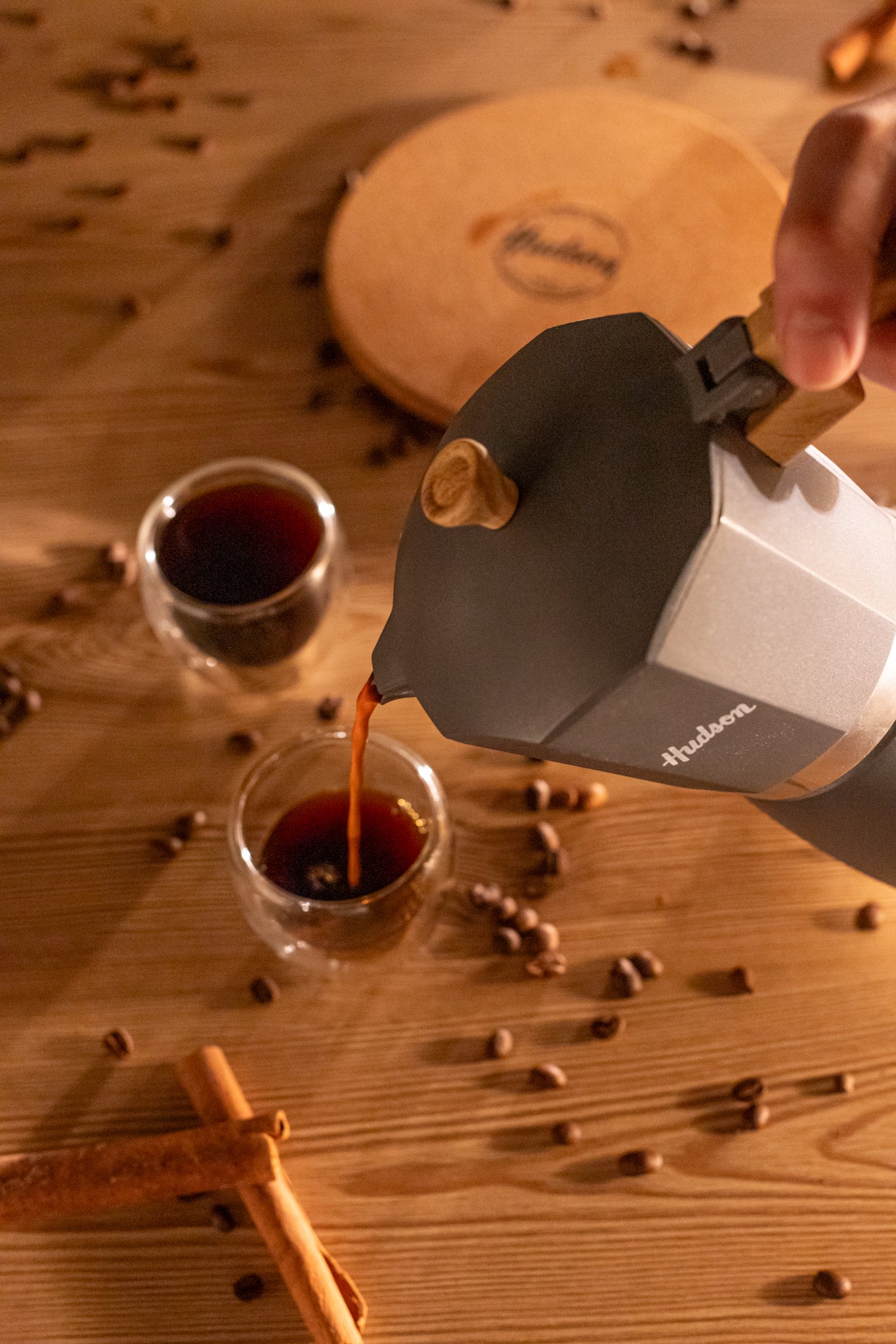 Cafetera Hudson Estilo Italiana 9 Tazas Aluminio Gris