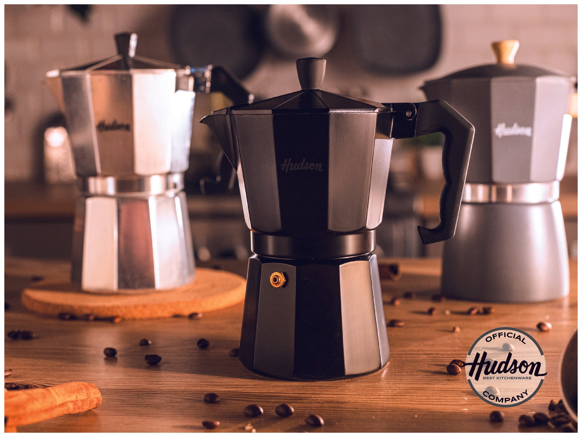Cafetera De Aluminio Black Italiana Inducción Linea Hudson
