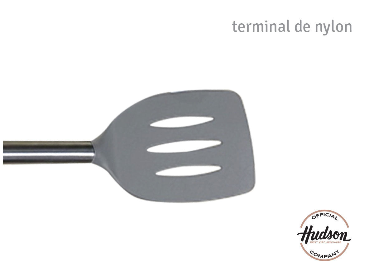 Si buscas un espátula calada que no no solo sea funcional, sino también duradera y fácil de limpiar, la espátula calada HUDSON Con Mango De Madera es para ti. En Hudson sabemos que cocinar es más que una tarea, es una forma de crear. Por eso, nuestros productos están diseñados para hacer que cada plato sea una experiencia.