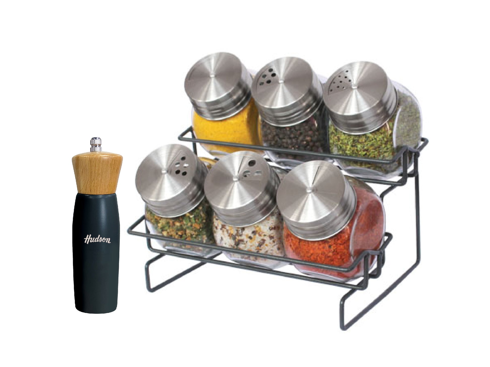 Especiero acero inoxadable + Molinillo de madera