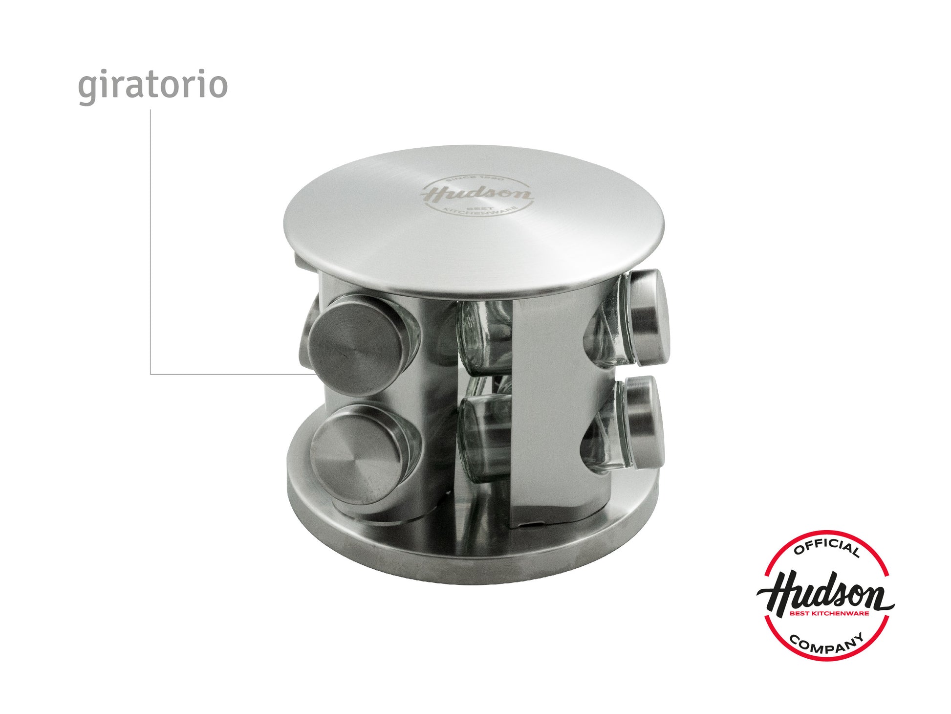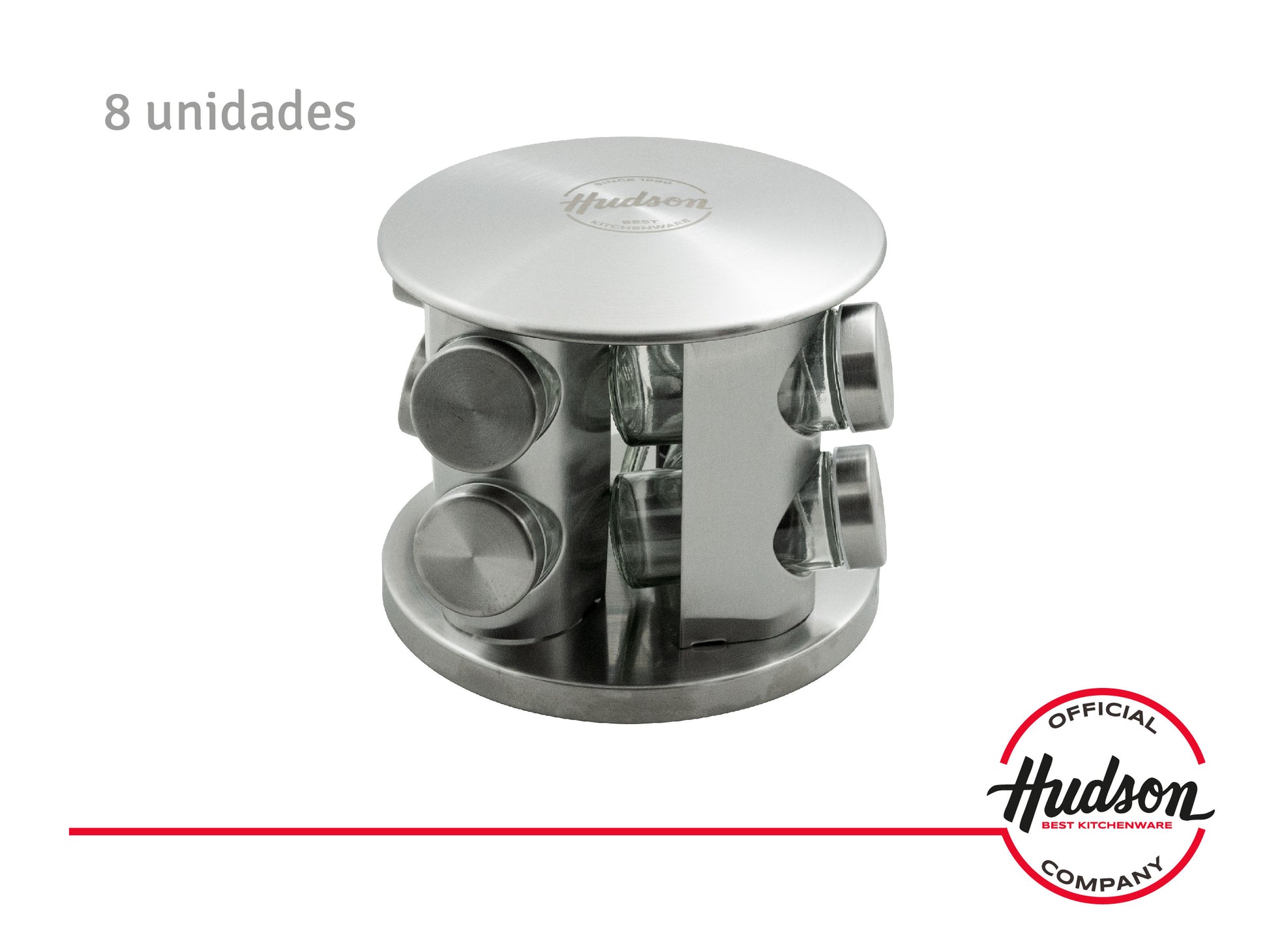 Especiero Giratorio Hudson Acero Inoxidable 8 Frascos Vidrio