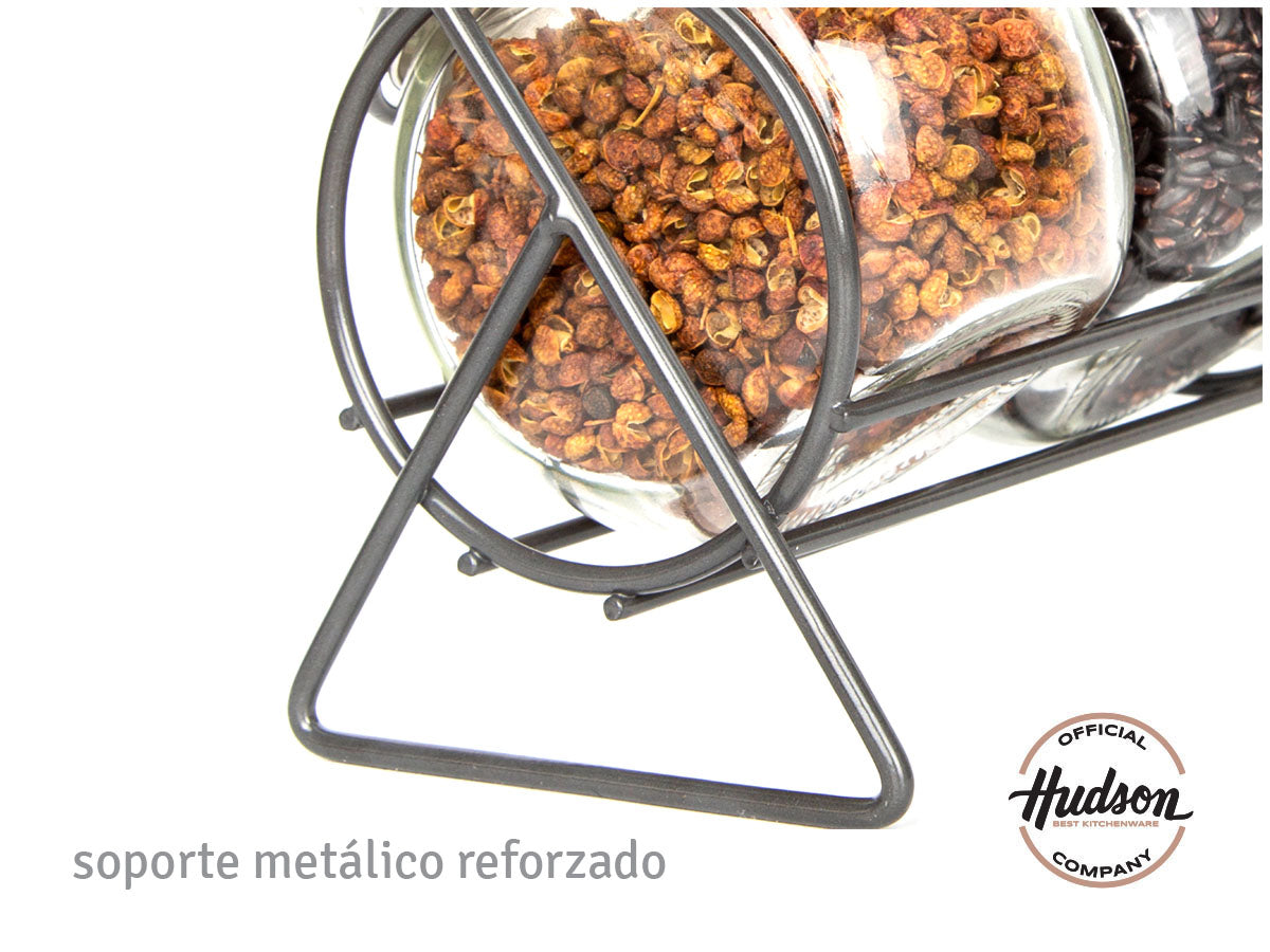 Especiero Hudson 4 Frascos De Vidrio Con Tapa + Base
