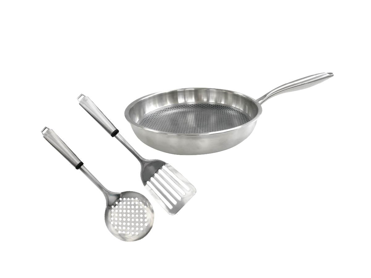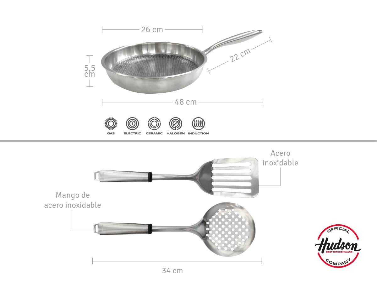 Sartén Acero Inoxidable + Volteadoras Nylon