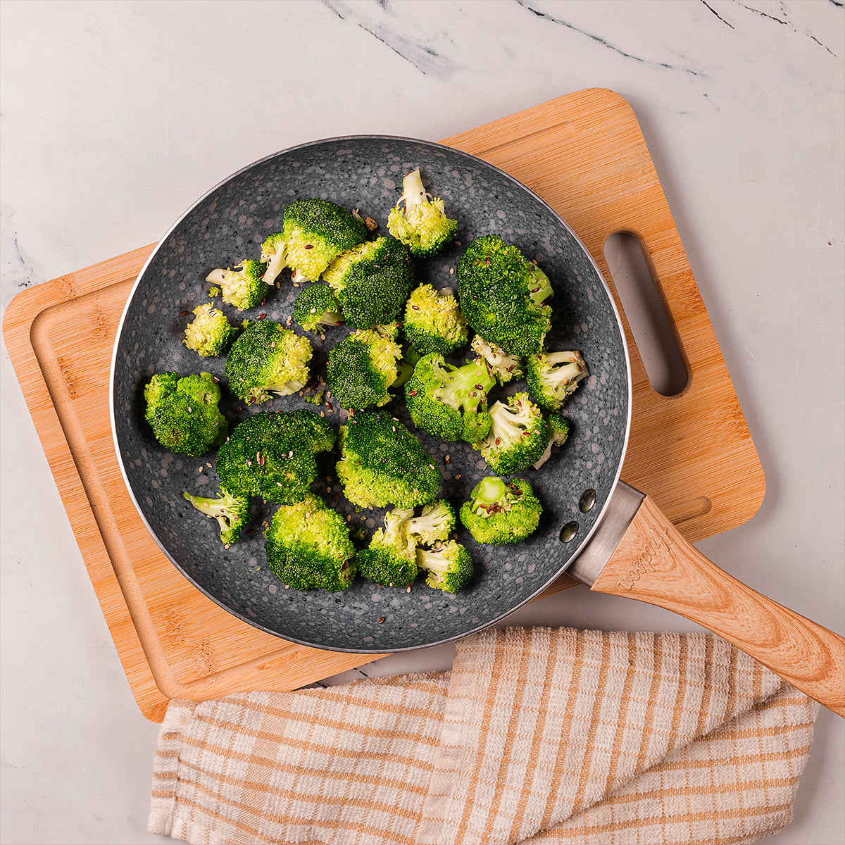 La comida no se pega, lo que hace que sea fácil de lavar y perfecta para cocinar de manera saludable con menos aceite.