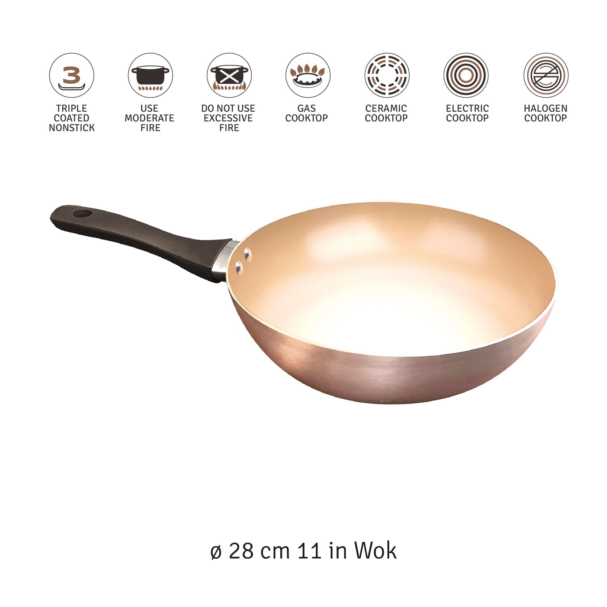 Al llevarte este Wok, estás agregando a tu cocina un básico imprescindible: Wok de aluminio con Antiadherente Cerámico Cobre de 28 cms. Perfecto para todo tipo de preparaciones.