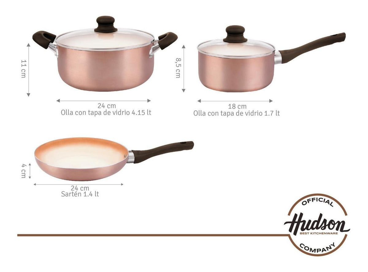 Si buscas un set de cacerolas y sartén que no sólo sea funcional, sino también duradero y fácil de usar, el set Hudson con revestimiento antiadherente cerámico es para ti. En Hudson sabemos que cocinar es más que una tarea, es una forma de crear. Por eso, nuestros productos están diseñados para hacer que cada plato sea una experiencia.