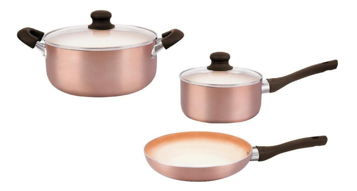 Al llevarte este set de cacerolas y sartén, estás agregando a tu cocina un básico imprescindible: Cacerolas de 24 y 18 Cm + sartén de 24 Cm Antiadherente Cerámico. Perfecto para todo tipo de preparaciones.