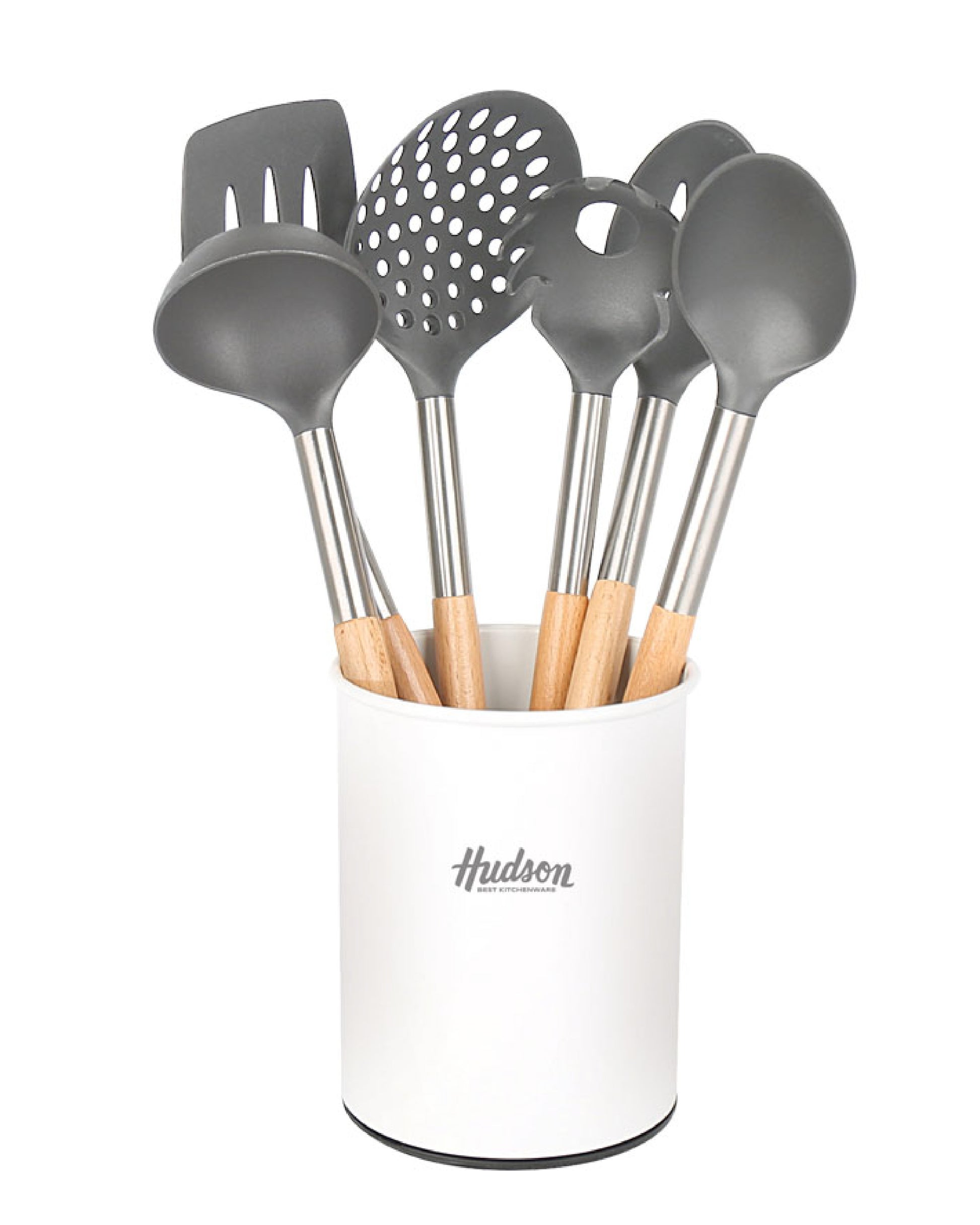 Al llevarte este set, estás agregando a tu cocina un básico imprescindible: Espumadera, Espátula, Cucharón, Cuchara, Cuchara para pastas, Cuchara Calada y Contenedor. Perfectos para todo tipo de preparaciones.