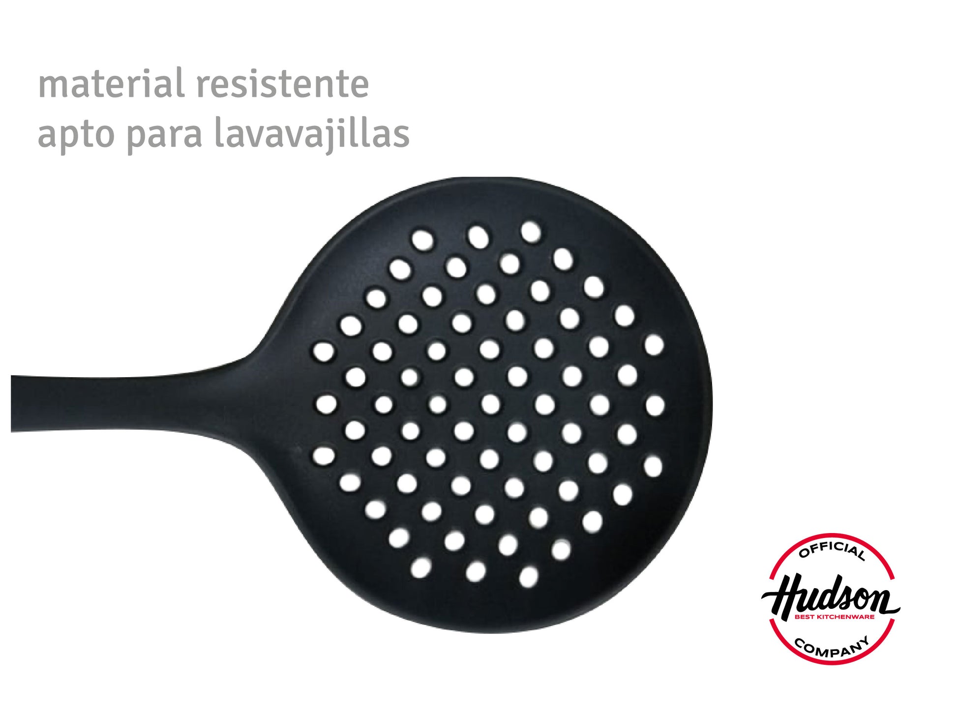 Si buscas un set práctico que no solo sea funcional, sino también duradero y fácil de limpiar, el Set de 6 Utensilios HUDSON de Nylon Gris Con Mango De Plástico es para ti. En Hudson sabemos que cocinar es más que una tarea, es una forma de crear. Por eso, nuestros productos están diseñados para hacer que cada plato sea una experiencia.