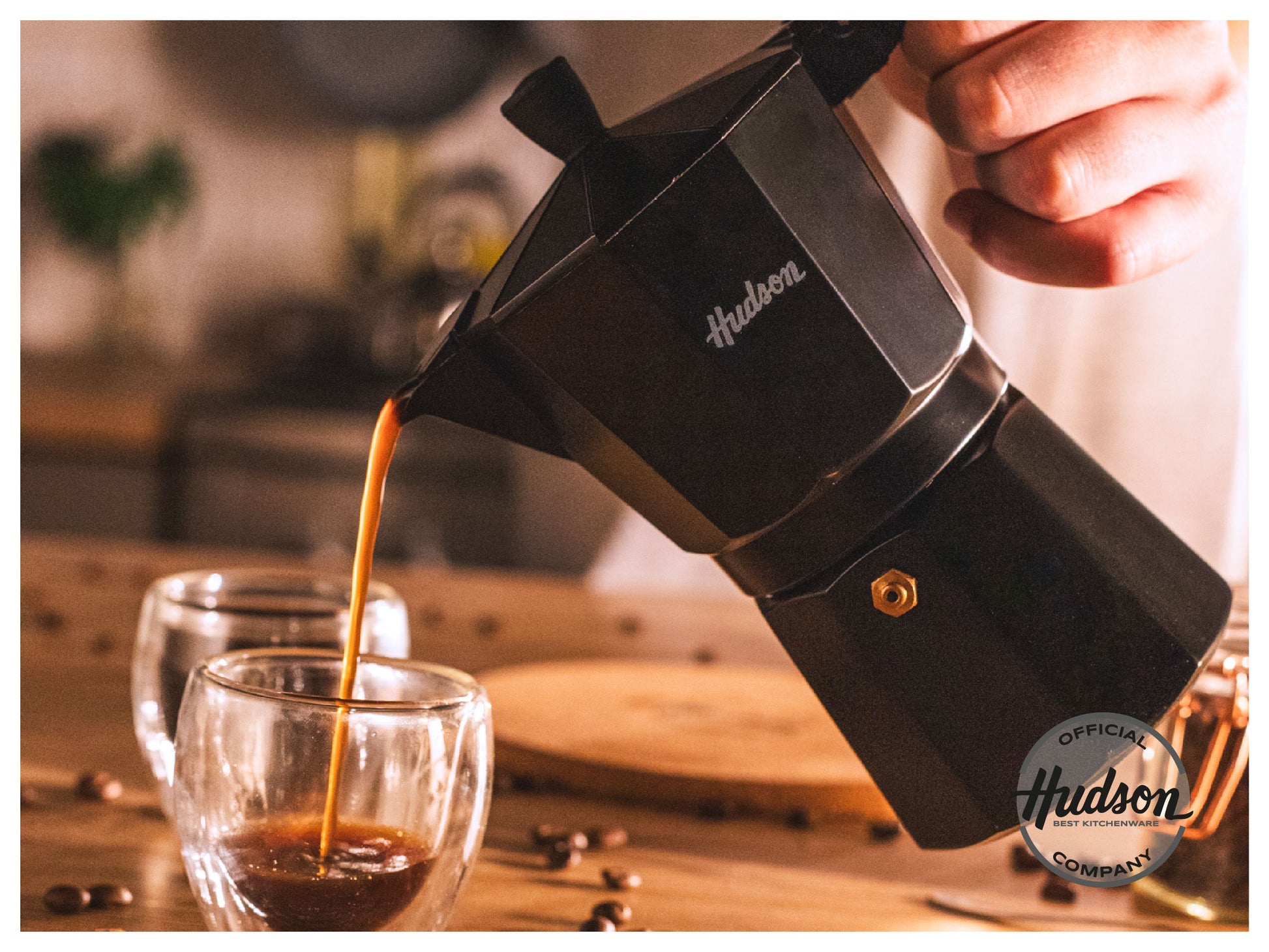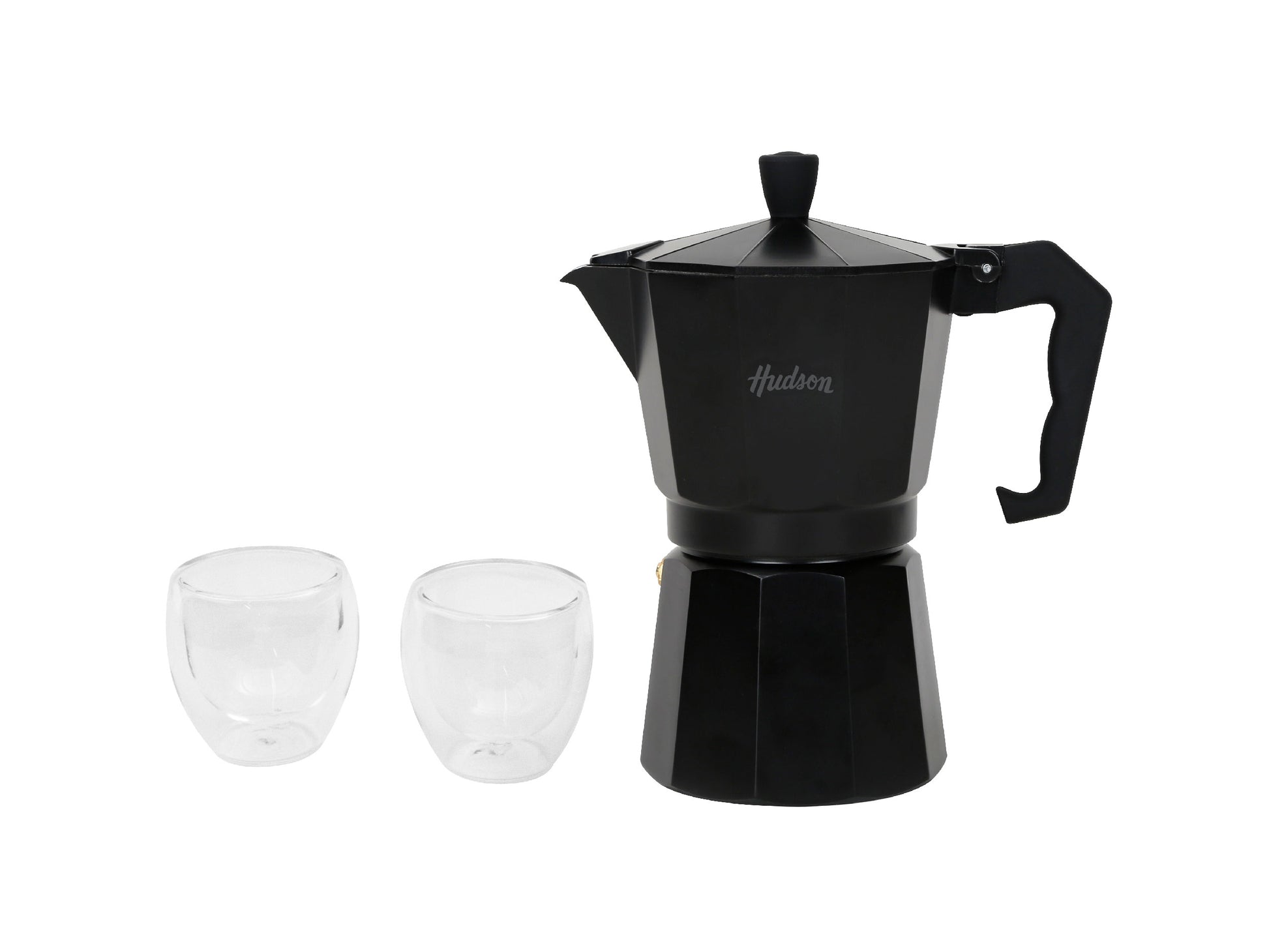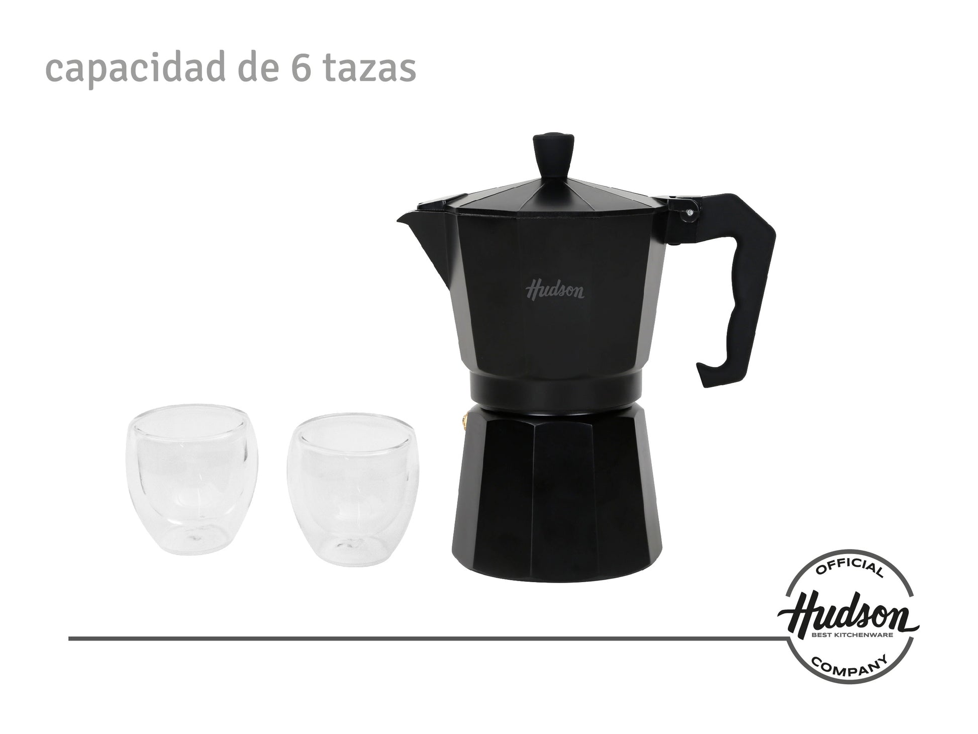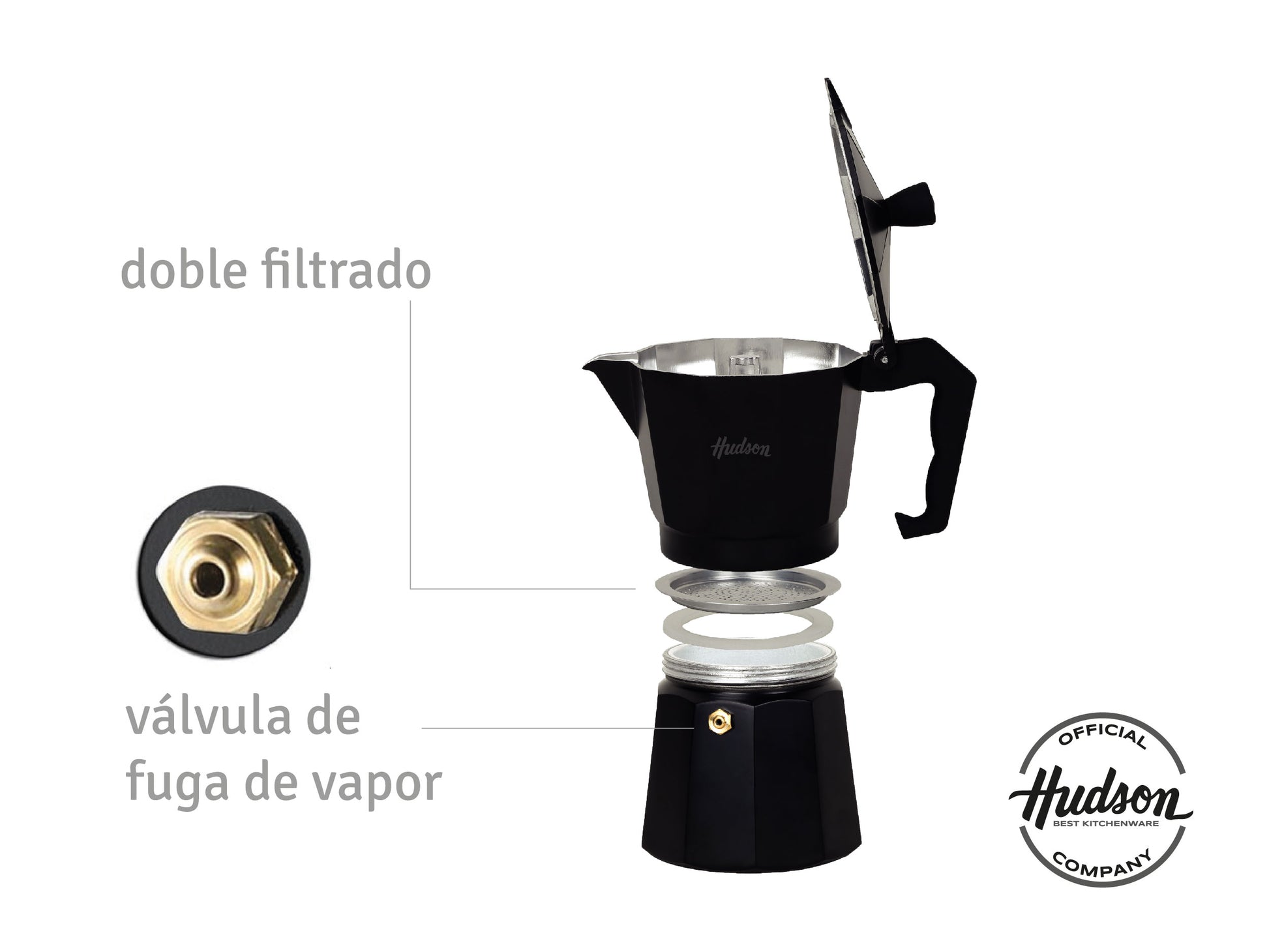 Set Cafetera Italiana De Aluminio Total Black Hudson Oficial
